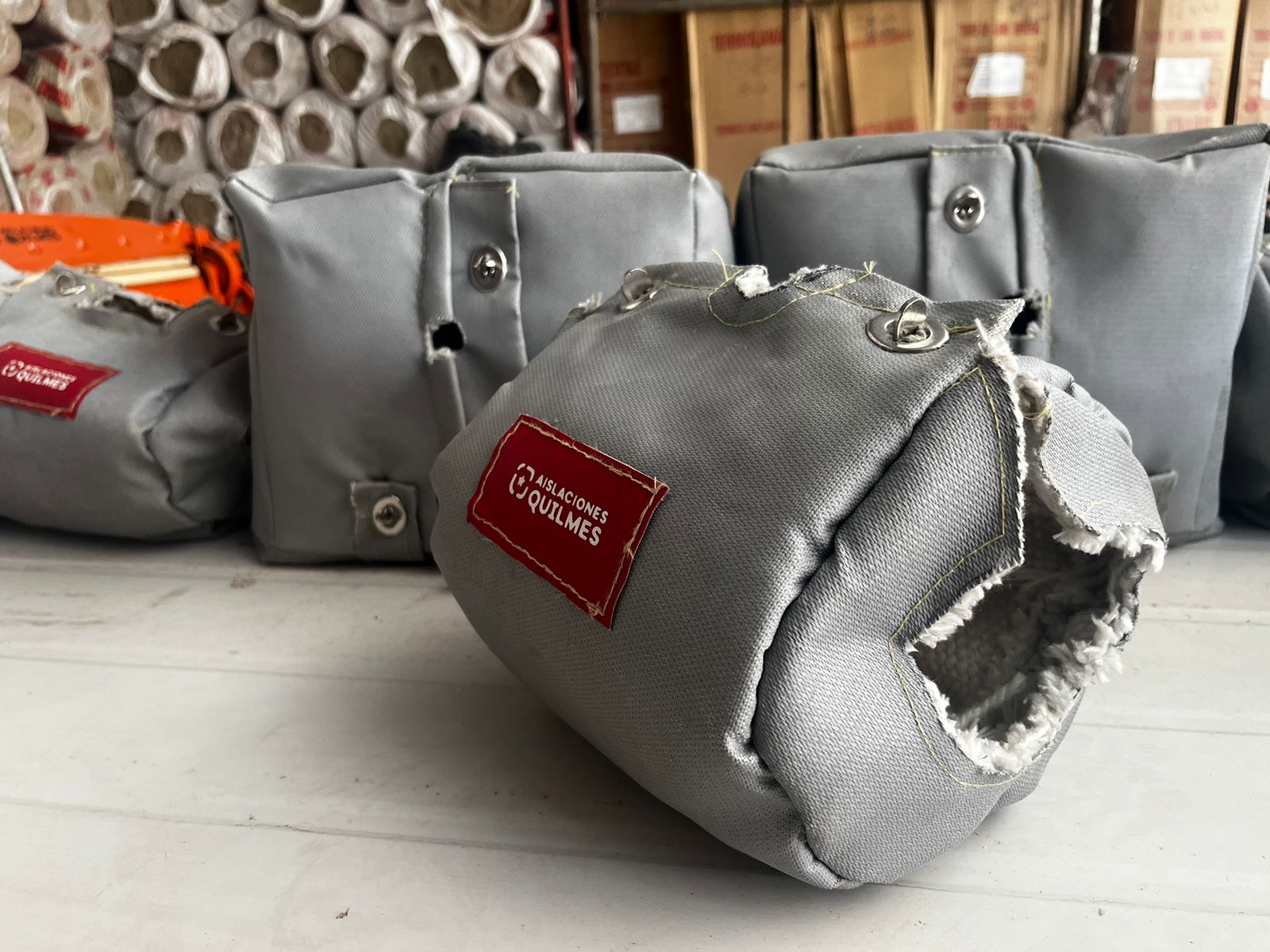Mantas aislantes a medida con textiles ignífugos e hilos de kevlar para alta temperatura.