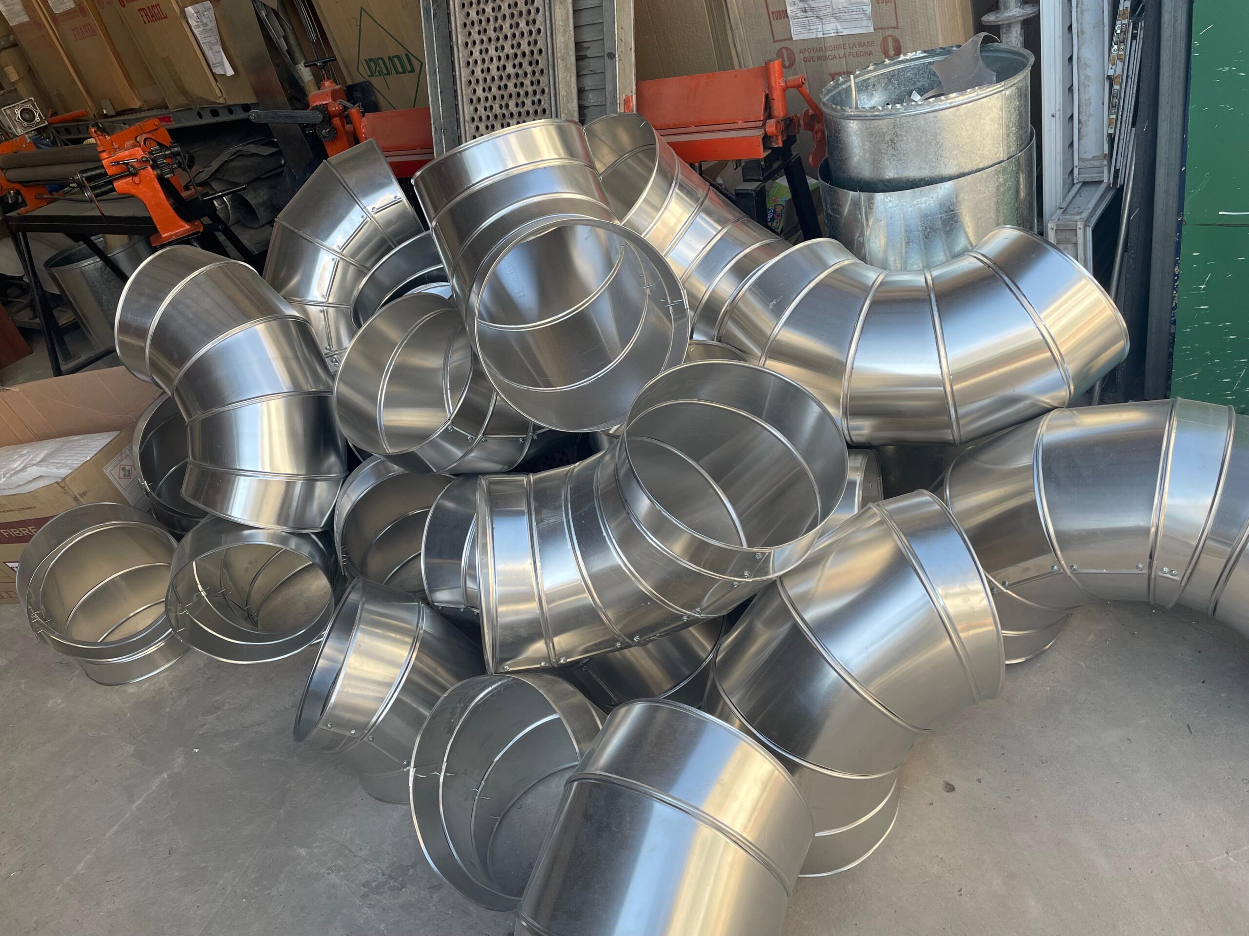 Ductos rectangulares y cilíndricos para aire acondicionado, extracción y ventilación industrial.